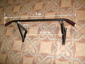 • Габариты турника: длина прекладины 1.0м, расстояние между кронштейнами крепления к стене 0.60м, диаметр перекладины 28мм. Телескопическая конструкция позволяет фиксировать расстояние перекладины от стены в трех положениях: 30см, 40см, 50см. Данные габариты позволяют комфортно подтягиваться узким и широким хватами, и выполнять различные упражнения на турнике.