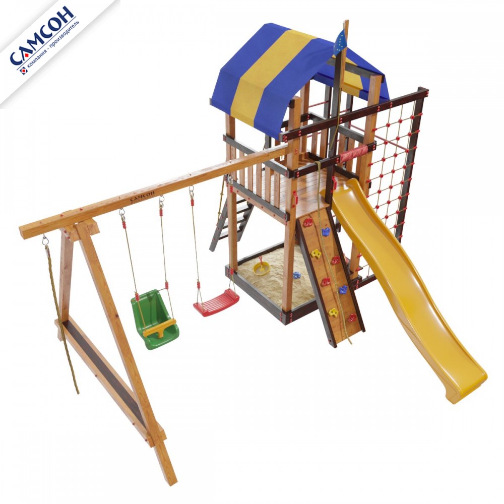 Товар поставляется в разобранном виде. В комплект для самостоятельной сборки входит подробная инструкция по сборке товара. Установка детской игровой площадки проводится на ровной поверхности, свободной от насаждений. Размер площадки не менее 6,7м х 6,2м. Рекомендуем зафиксировать конструкцию используя анкера любой формы.