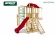 Модули:: башня высокая с лестницей, крыша из ткани, 2 горки пластиковые 1,5 метра , лестница веревочная, кольца канатные, скалодром, горка сетчатая, модуль с качелями