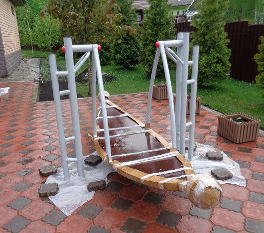 • Уникальный балансир-качели. Детей не оторвать от подобных качелей. Помимо уникального дизайна на этих качелях может одновременно качаться несколько детей, что дает возможность для целого ряда игр. Стоимость указана за конструкцию из стали с порошковой окраской. Возможно изготовление из нержавеющей стали.