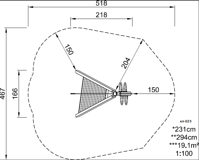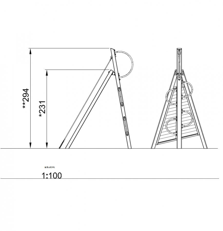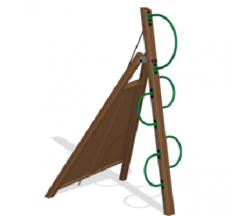 • Спортивно-игровой элемент: платформа для восхождения со страховочным канатом. На опоре расположены дугообразные стальные зацепы для лазанья.