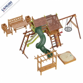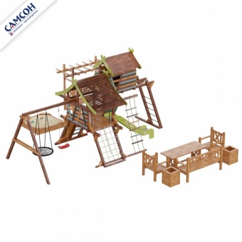 Детские игровые деревянные площадки для дачи серии Хижина предназначены для детей от 4 до 12 лет, и создают условия, обеспечивающие физическое развитие ребенка, развивающие координацию движений, преодоление страха высоты, ловкость и смелость, чувство коллективизма в массовых играх.