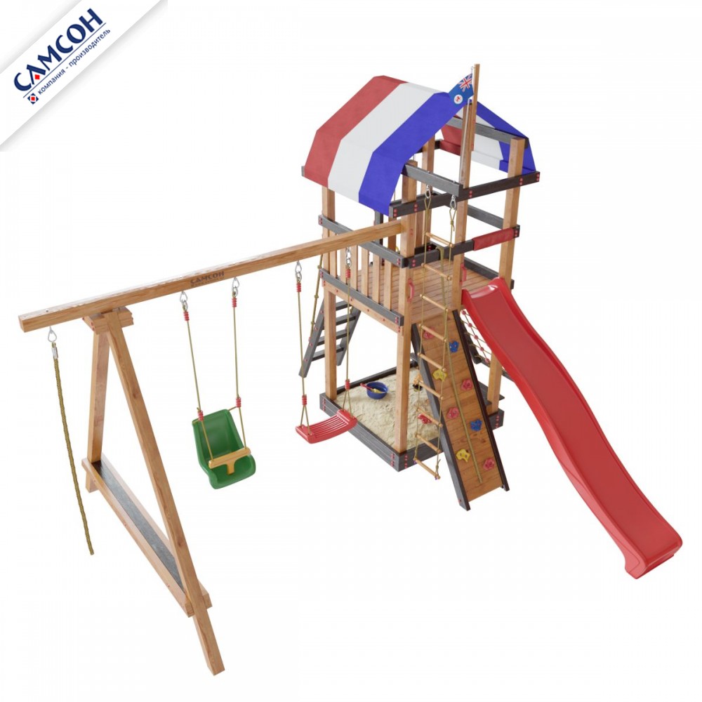 Товар поставляется в разобранном виде. В комплект для самостоятельной сборки входит подробная инструкция по сборке товара. Установка детской игровой площадки проводится на ровной поверхности, свободной от насаждений. Размер площадки не менее 6,8м х 6,2м. Рекомендуем зафиксировать конструкцию используя анкера любой формы.